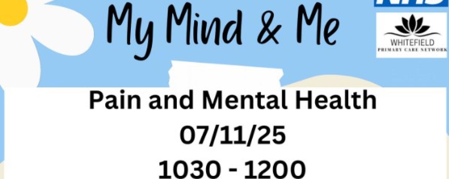 See the new FREE My Mind & Me sessions where they will be joined by the Bury pain service exploring the connections with long term pain and the effects on mental wellbeing.