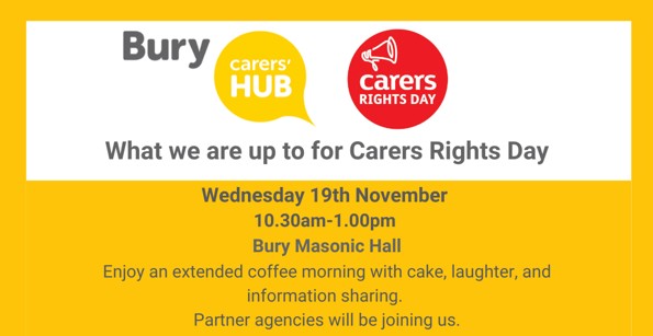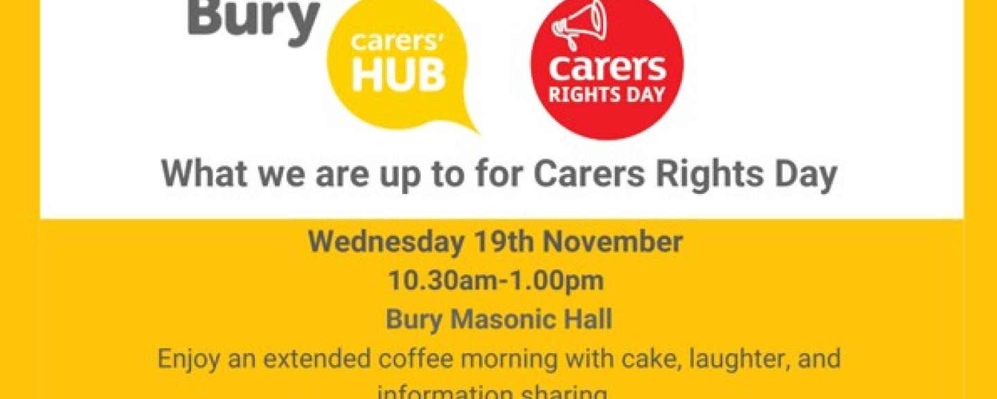 Bury Carers’ Hub will be hosting a special event to mark Carers Rights Day, an annual opportunity to raise awareness of carers’ rights and the support available to them.