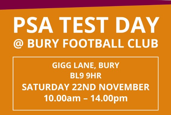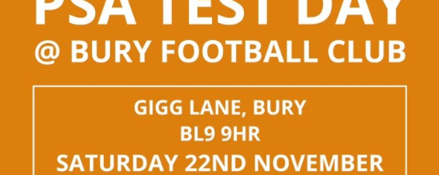 Bury Football Club are hosting a PSA Test Day in association with the Barry Kilby Prostate Cancer Appeal on: