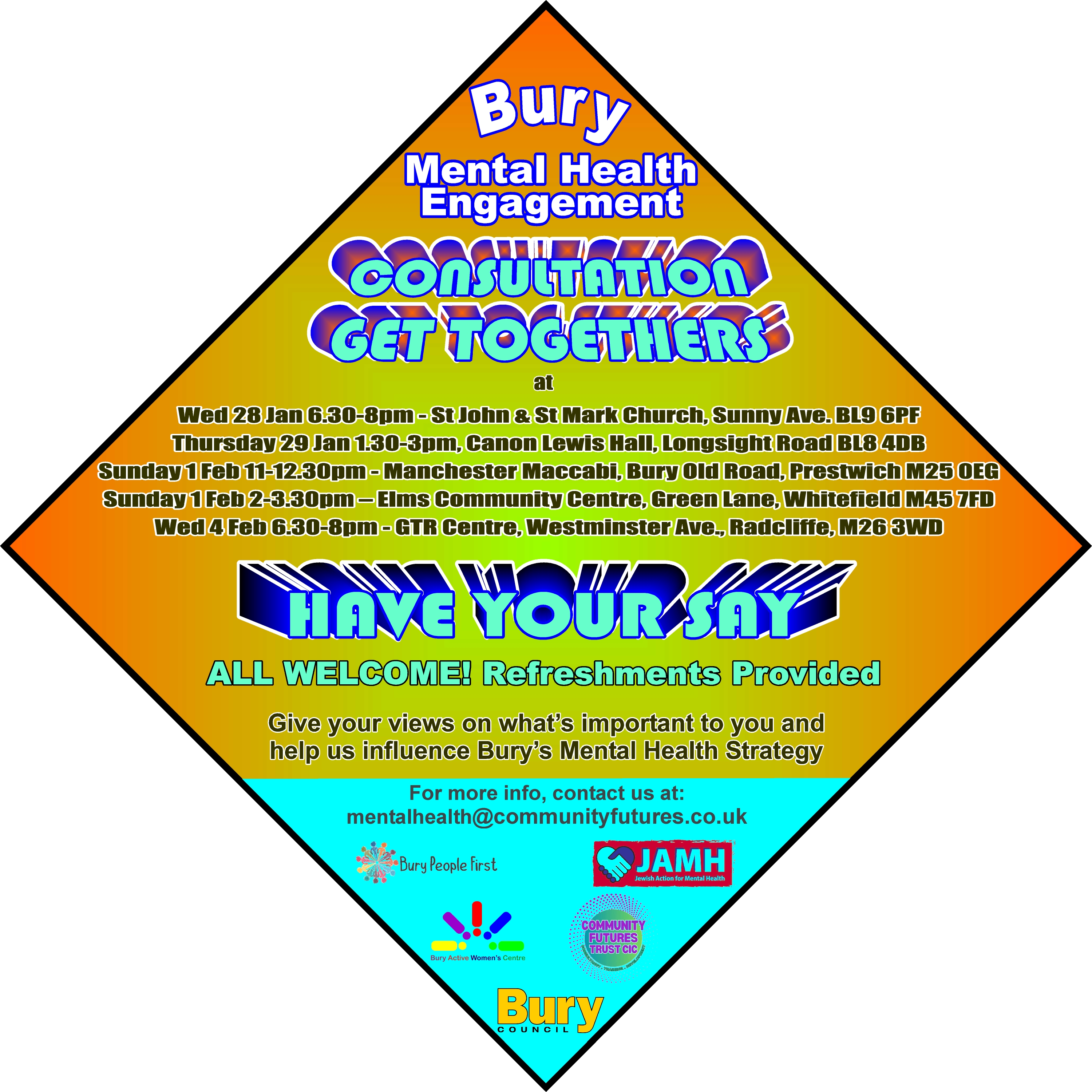 This is your chance to have your say and influence the Bury Mental Health Strategy.